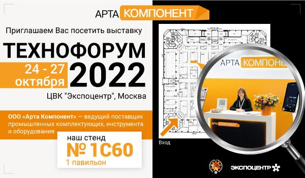 ООО "Арта Компонент" приглашает Вас посетить свой стенд № 1С60 в 1-м павильоне на выставке «ТЕХНОФОРУМ 2022», которая пройдет с 24 по 27 октября в ЦВК "Экспоцентр" (Москва).