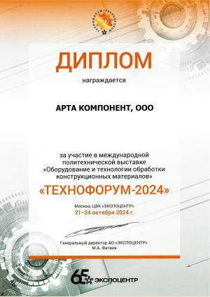 Диплом участника выставки Технофорум-2024