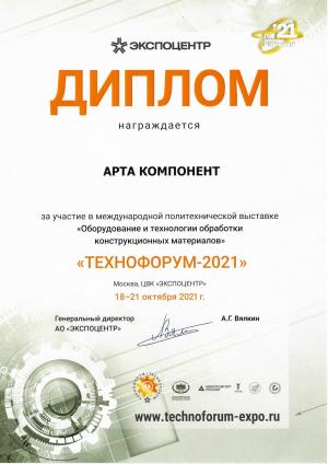Диплом участника в выставке Технофорум-2021