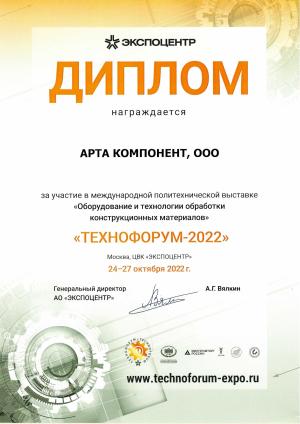 Диплом участника в выставке Технофорум-2022