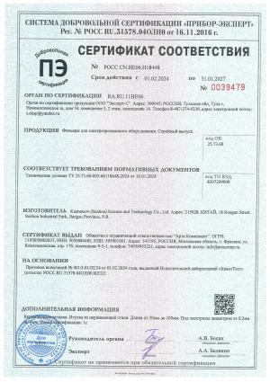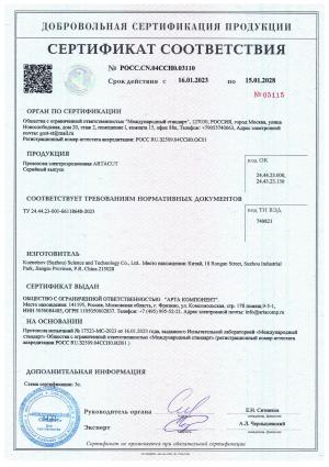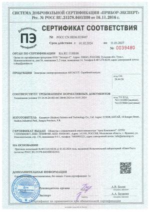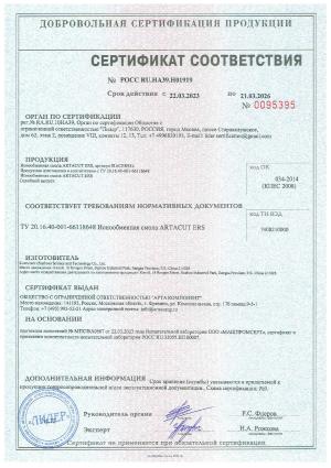 Сертификат соответствия на смолу ионообменную ARTACUT ERS