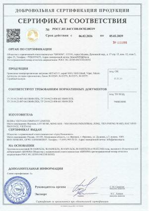 Электроды ARTACUT добровольный сертификат соответствия